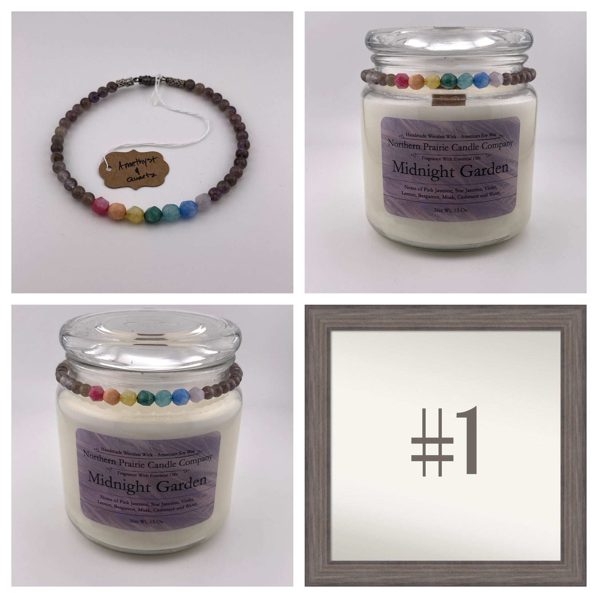 Enjoy the natural beauty of the stones while the candle burns and fills the room with your scent of choice! The necklaces are easily transferable to the next candle as you change them out so your decor choices are only obsolete if and when you say so!
